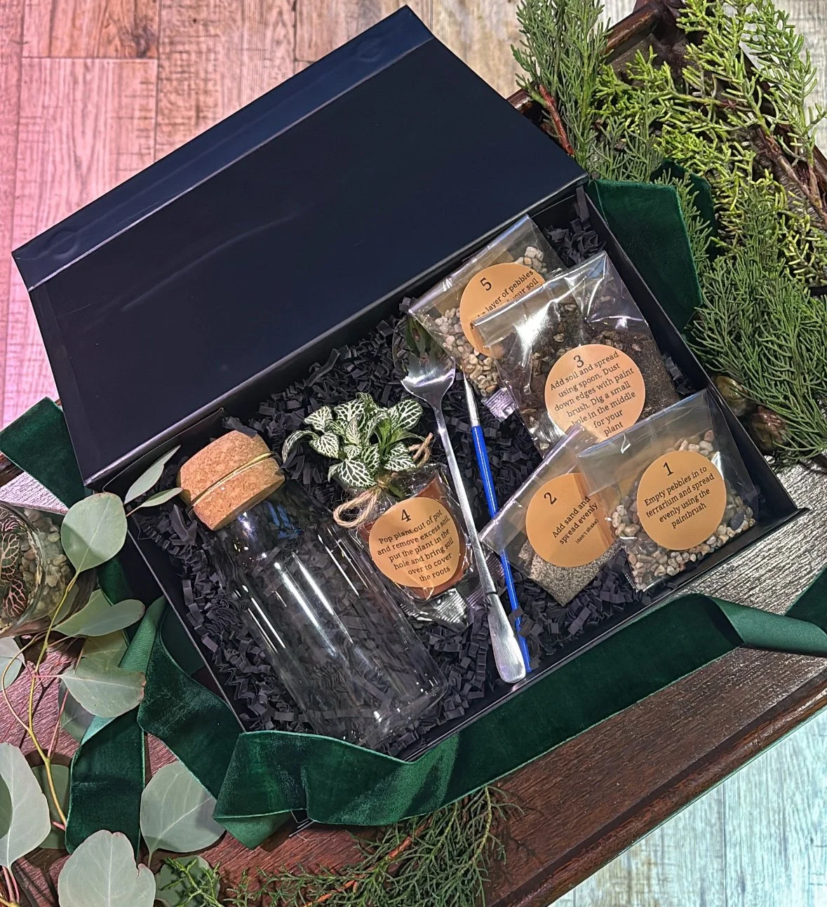 This kit provides everything you need to plant your own terrarium at home. The perfect gift, neatly packaged ready to pop under the tree for your loved one this festive season!
